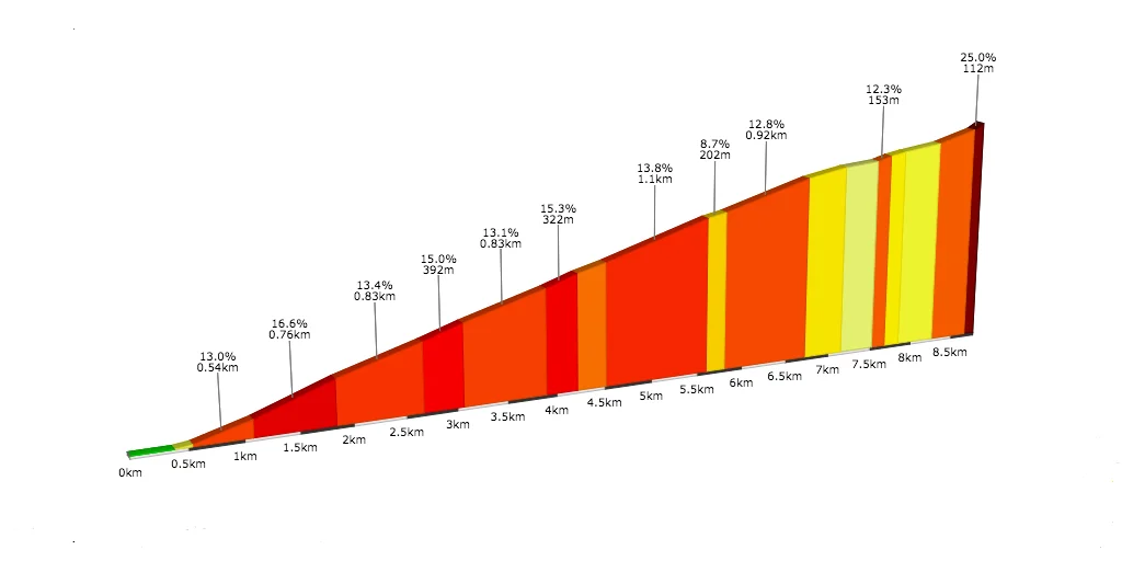 - Pendenza media salita Zoncolan da Liaris (Km 8,7) 12%